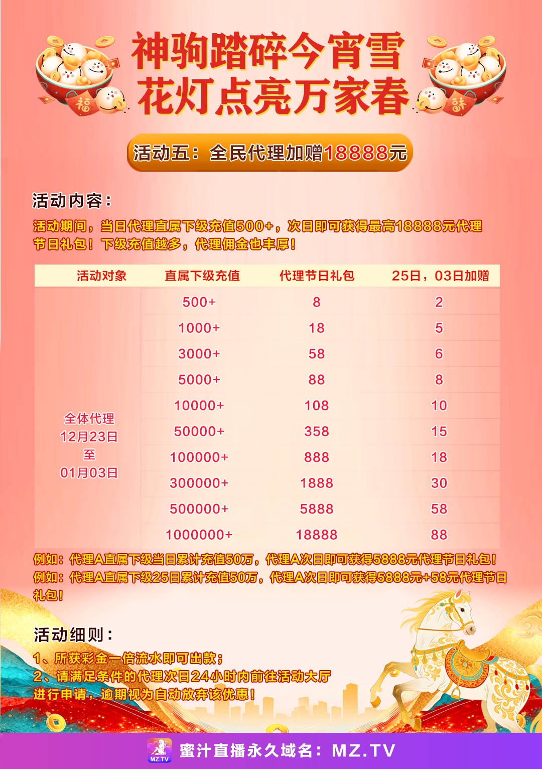 神驹踏碎今宵雪 花灯点亮万家春⑤ 全民代理加赠18888元